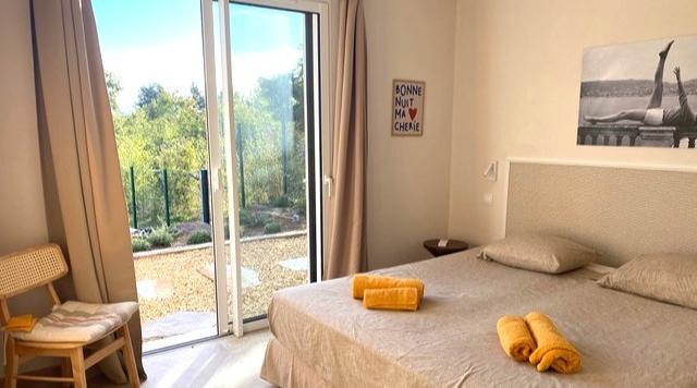 Vom Garten aus gelangen Sie direkt auf den Golfplatz. Allerdings gibt es keinen Blick auf den Kurs, so dass Sie absolute Privatsphäre haben. Das Haus ist für 10 Erwachsene geeignet und verfügt über einen schönen privaten Pool. Von der Terrasse aus können Sie den Panoramablick auf das Meer und die Aussicht auf Saint-Tropez genießen. Die Villa besteht aus zwei Etagen. Sehr geeignet für Golfliebhaber und Familien. Das 9x4,5m große Schwimmbad hat einen Kinderalarm. Der Pool kann auf Anfrage beheizt werden. Der Garten von etwa 1400 m2 ist schön bepflanzt und verfügt über ein automatisches Bewässerungssystem. Der Rasen ist ein Kunstrasen. Um den Pool herum befindet sich eine 55 m2 große Sonnenterrasse mit 8 Sonnenliegen, die nach Süden ausgerichtet sind und somit eine sehr günstige Sonneneinstrahlung haben. Der Rest des Gartens liegt an einem Hang und ist mit Mimosen und Eichen bewachsen. Neben der Villa befindet sich ein Petanque-Platz (Boule-Kugeln vor Ort). Elektronische Zugangskontrolle mit Videoüberwachung vorhanden. Golfplatz Clubhaus und Tennisplätze sind zu Fuß erreichbar. Sainte-Maxime ist mit dem Fahrrad in 15 Minuten zu erreichen, sicherer und schöner Radweg entlang der Küste (3 km). In Sainte- Maxime gibt es gemütliche Abendmärkte und am Donnerstagmorgen einen großen provenzalischen Markt. Ein Bootsausflug nach Saint-Tropez vom Hafen von Sainte-Maxime ist ebenfalls sehr zu empfehlen.