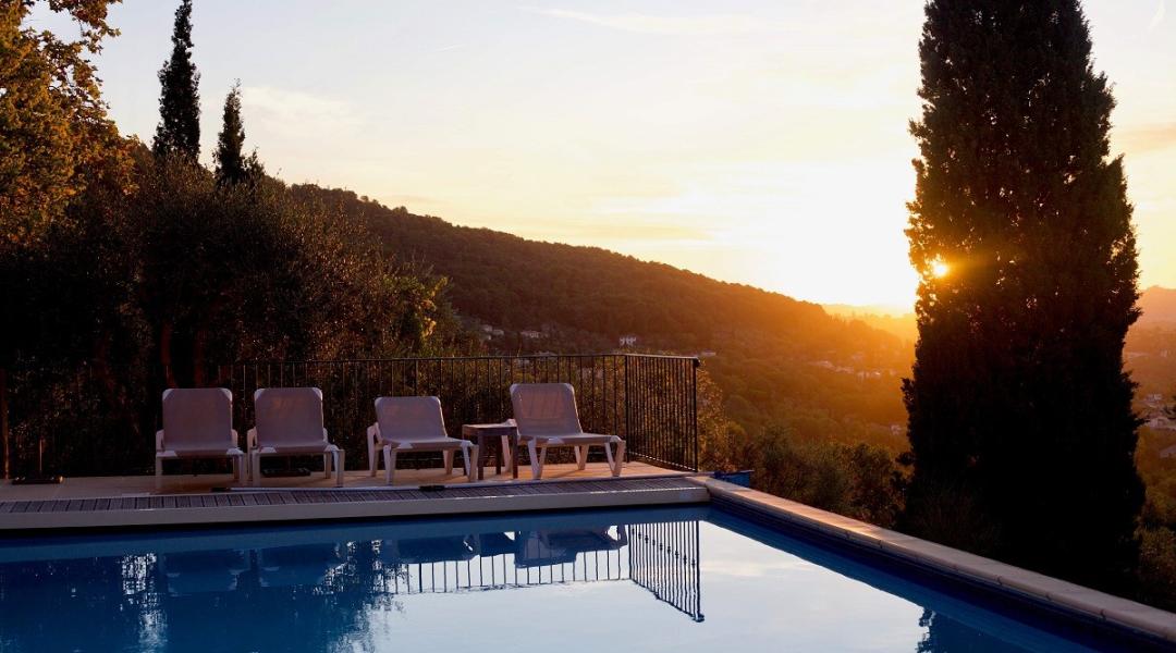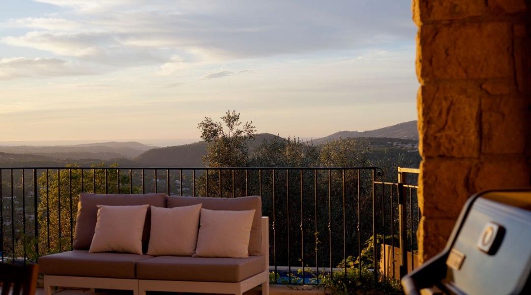 Vom Gelände aus, auf dem das Haus gebaut ist, hat man eine fantastische Aussicht über das Tal von Grasse bis zum Mittelmeer und von Cannes bis zum Estérel-Gebirge. Die Villa wurde von dem renommierten lokalen Architekten, Phillip Afchain entworfen. Er hat eine Mischung aus provenzalischen und toskanischen Stilen verwendet, wobei er die Harmonie der Umgebung und der Lage des Standorts berücksichtigt hat. Die Villa (Baujahr 2007) hat eine einzigartige Lage, verfügt über eine Wohnfläche von 250 m2 und ist mit allem Komfort und Luxus ausgestattet. Die Villa bietet Platz für 8 Personen und ist sehr geschmackvoll eingerichtet. Beim Bau wurde besonders auf hochwertige Materialien geachtet. Das terrassenförmige Gelände von ca. 4500 m2 bietet abwechslungsreiche und schattenspendende Bepflanzung mit Olivenbäume, Zypressen, usw. Am Haus können mehrere Autos geparkt werden; die Garage bietet Platz für 2 Autos. Ein ferngesteuertes Tor führt zur Auffahrt des Hauses. Neben dem Haus befinden sich eine überdachte Terrasse mit (mobilem) Grill, die Doppelgarage, Sanitäranlage für den Pool, ein großer Pool von 6 x 12 Metern (zwischen 1 und 2 Meter tief) und mehrere Terrassen. Für jüngere Kinder gibt es unter anderen einen Schaukel und ein aufblasbares Becken. Diese Villa ist ebenfalls sehr geeignet für einen Aufenthalt im Winter, da das ganze Haus mit Fußbodenheizung ausgestattet ist. Im Umkreis von zwei Fahrstunden gibt es sechs Skiorte.